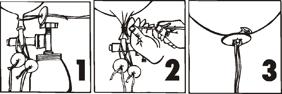Durch die Q-Bündelung der Verschlüsse müssen Sie beim Vorbereiten nicht jeden einzelnen Verschluss auf den Abfüllstutzen legen, sondern immer 20 Verschlüsse gleichzeitig. Damit sparen Sie 30-40% Zeit, bzw. können entsprechend mehr Ballons in kürzerer Zeit befüllen. Laien schaffen damit etwa 150 Ballons, Profis 300-400 Ballon pro Stunde.